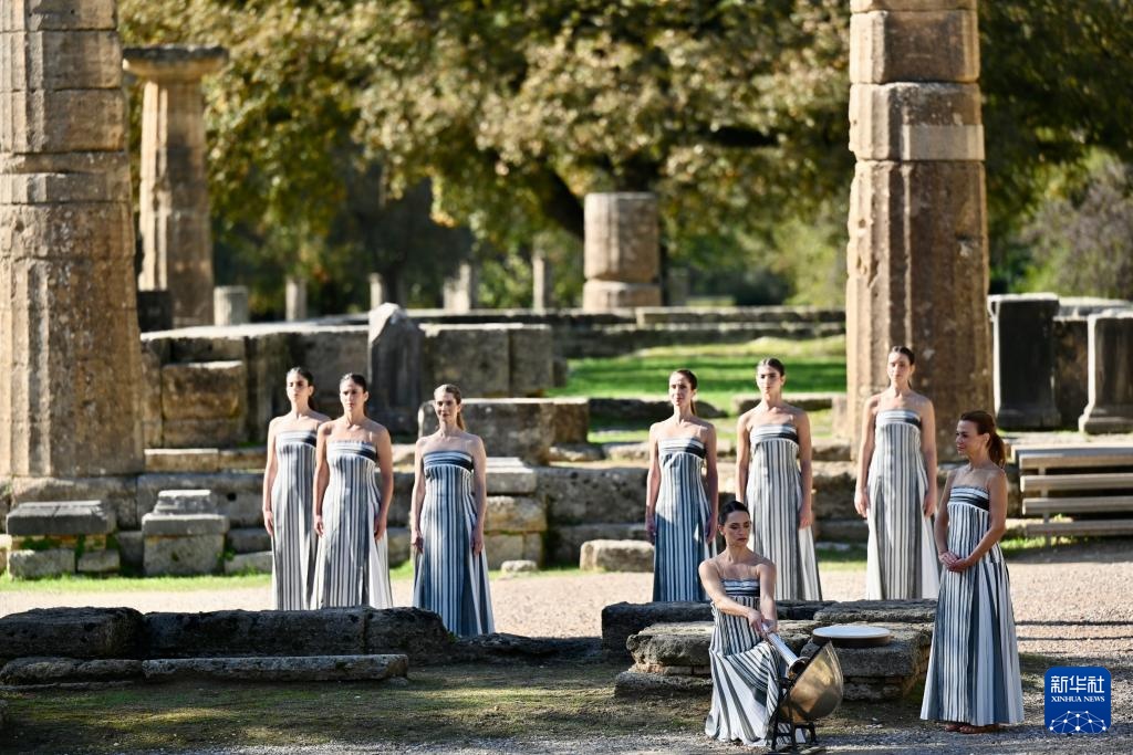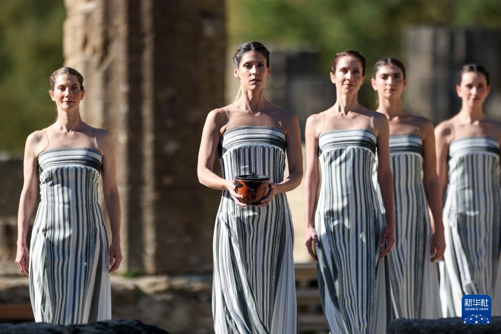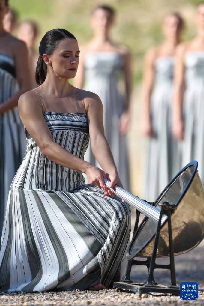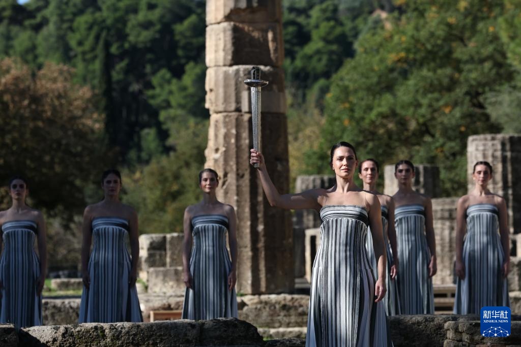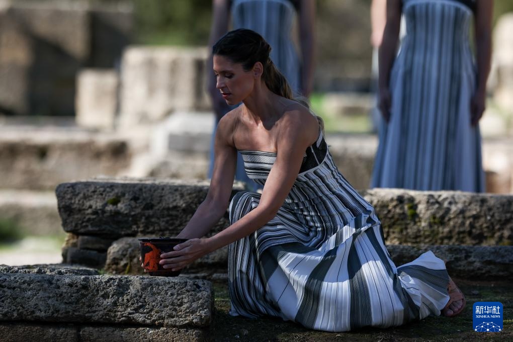 11月24日,一名扮演女祭司的演员放置火种罐。新华社记者 李京 摄