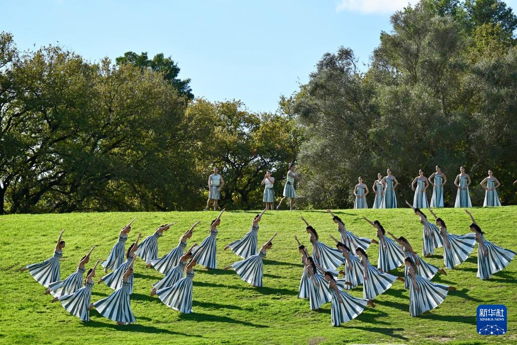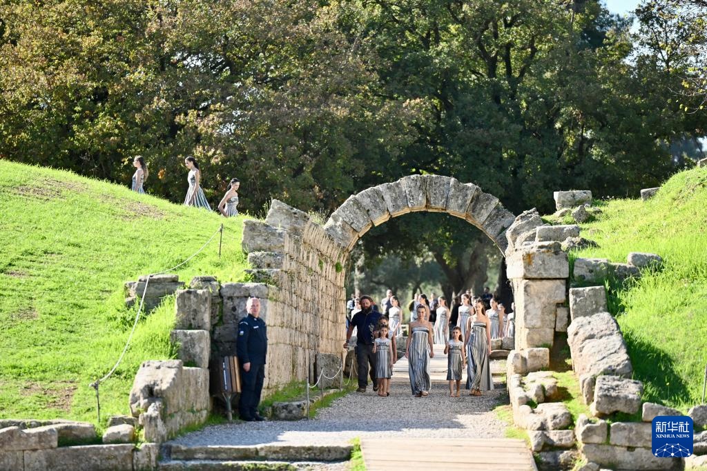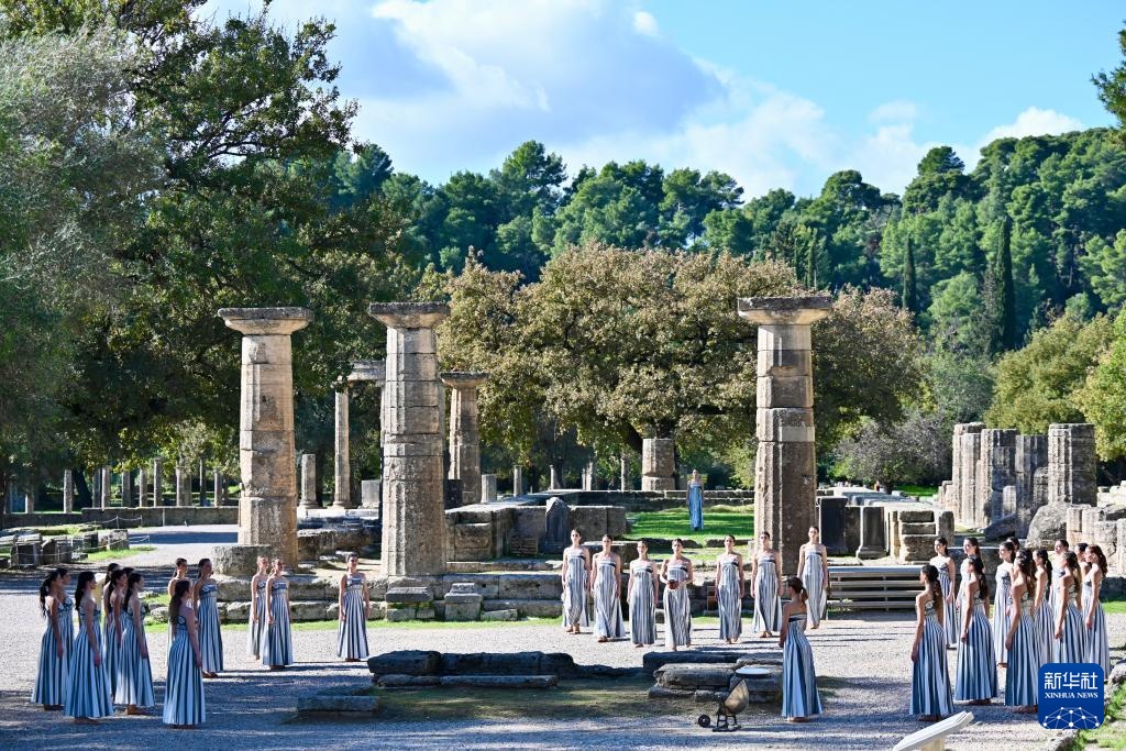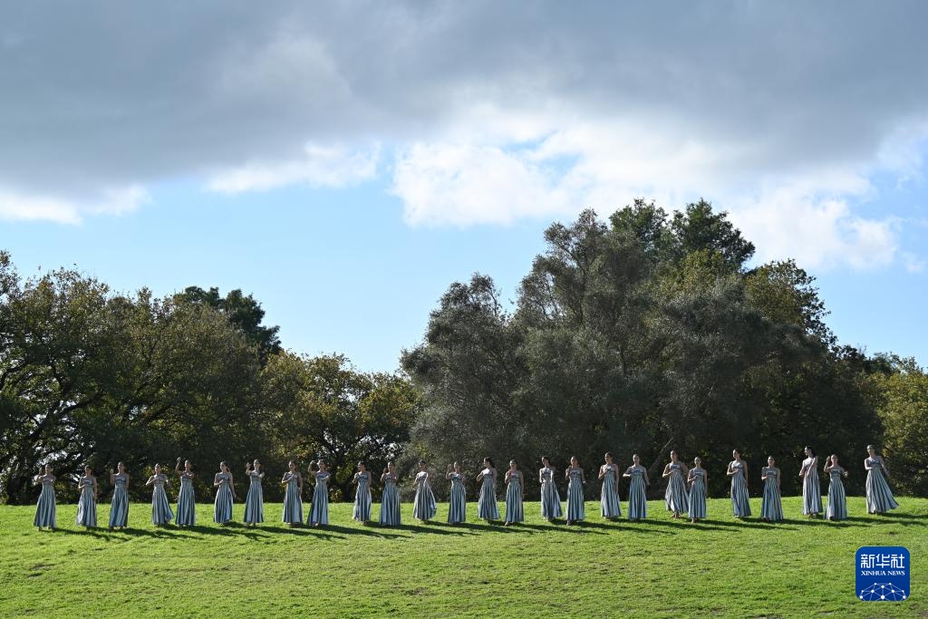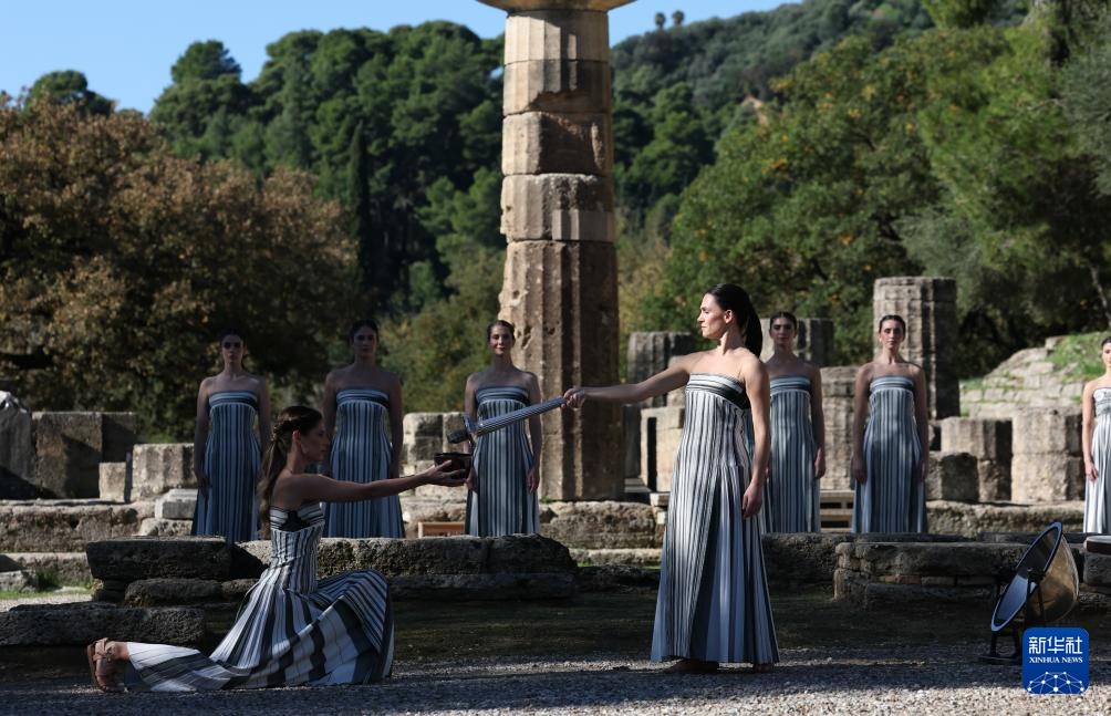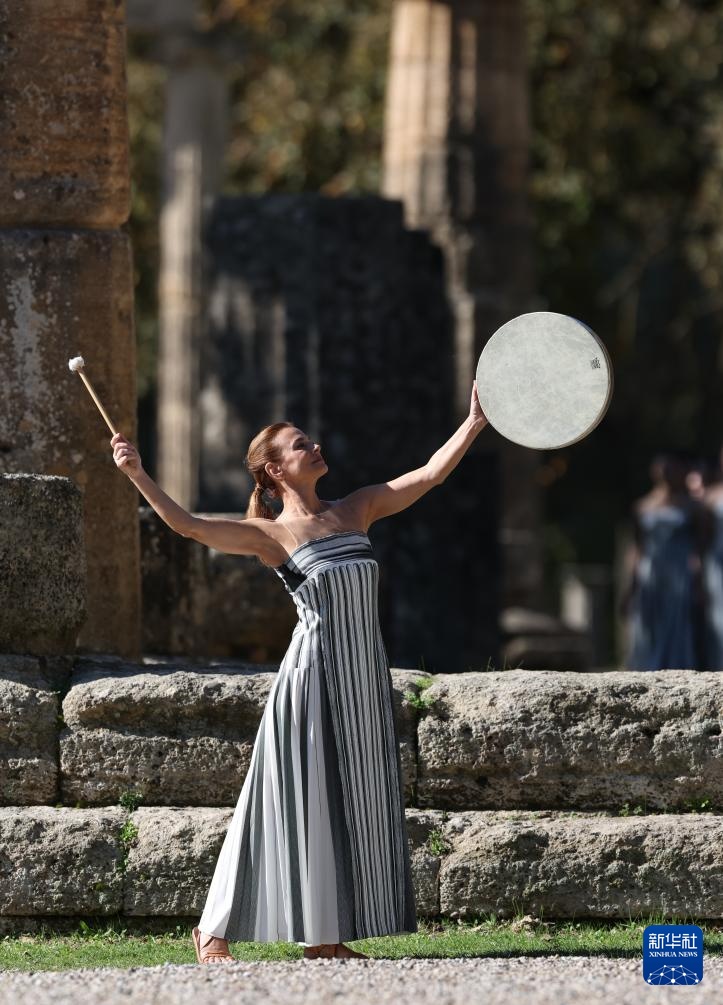 11月24日,一名扮演女祭司的演员放置火种罐。新华社记者 李京 摄